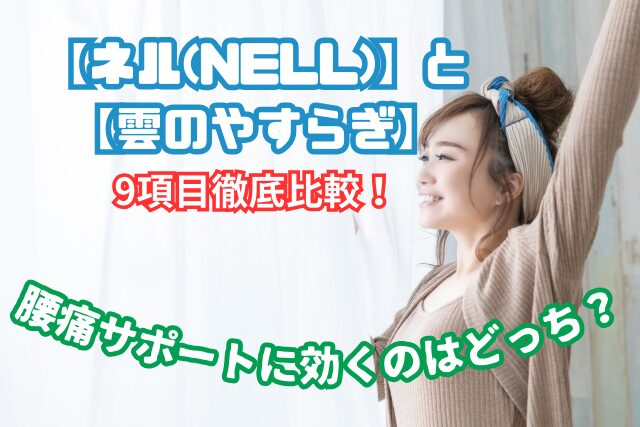 そこで本ブログでは、腰痛や睡眠の質改善を重視する方に向けて、「ネル(NELL)マットレス」と「雲のやすらぎ」を9項目で比較しながら、腰痛・肩こり対策として最適な選び方と、特にネル マットレスをおすすめする理由を詳しくご紹介します。